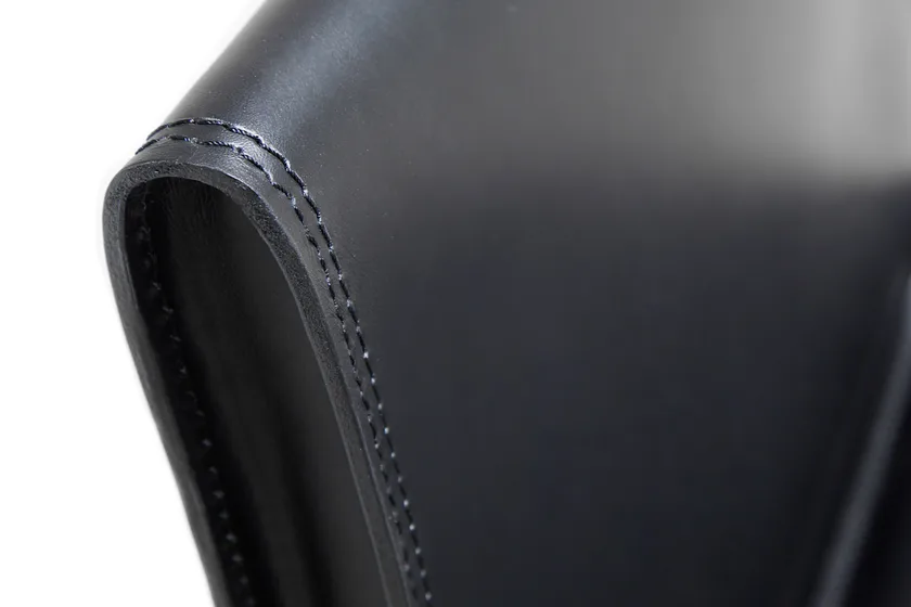 Стул демонстрирует продуманные детали дизайнера, включая плавные линии и бесшовную обивку из кожи. Внимание к деталям в строчке и общей отделке добавляет ему роскошный вид. Форма является как функциональной, так и визуально приятной, что делает его привлекательным дополнением к любой комнате. Сочетание кожи и стали не только выполняет практические задачи, но и добавляет эстетического очарования стулу.